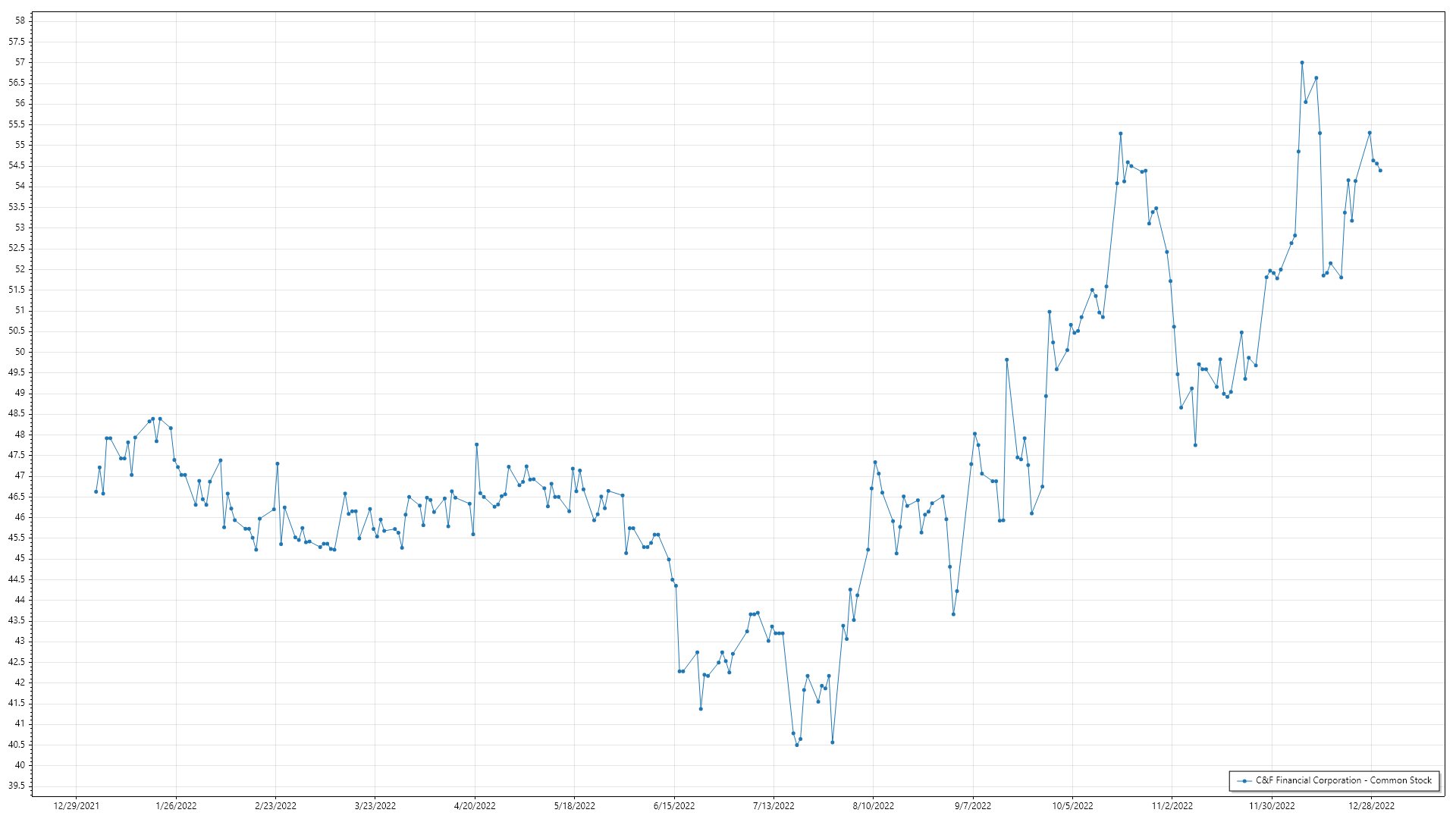 | 15-09-2022 | Dennis Makes It Rain | C&F Financial Corporation - Common Stock | 1000 | $45.94 | $45,937.50 |