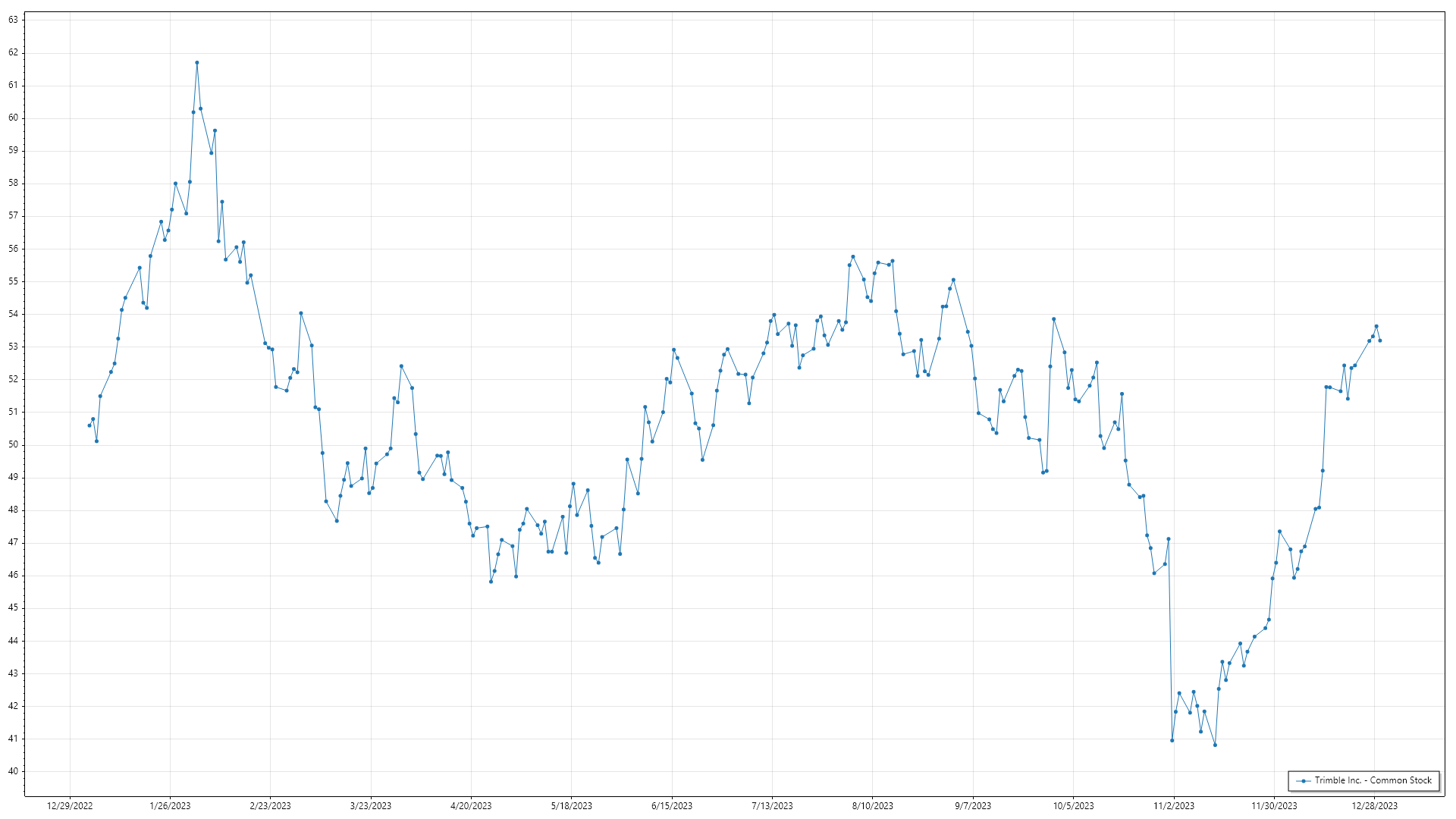 | 18-10-2023 | Dennis Makes It Rain | Trimble Inc. - Common Stock | -1000 | $51.57 | -$51,570.00 |